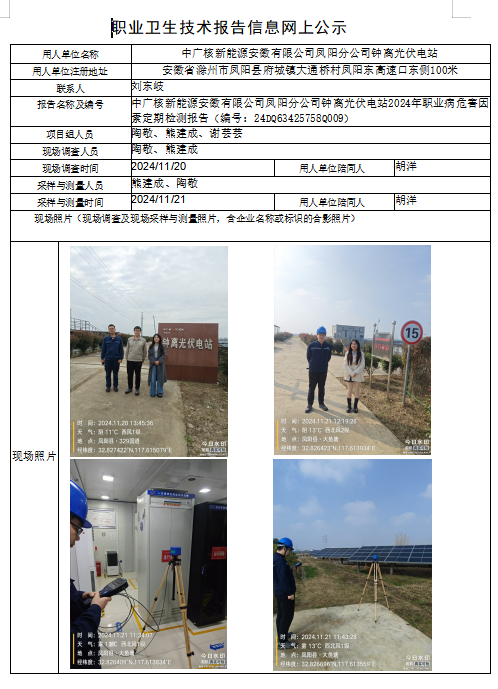 中廣核新能源安徽有限公司鳳陽分公司鐘離光伏電站2024年職業病危害因素定期檢測報告(編號:24DQ63425758Q009)